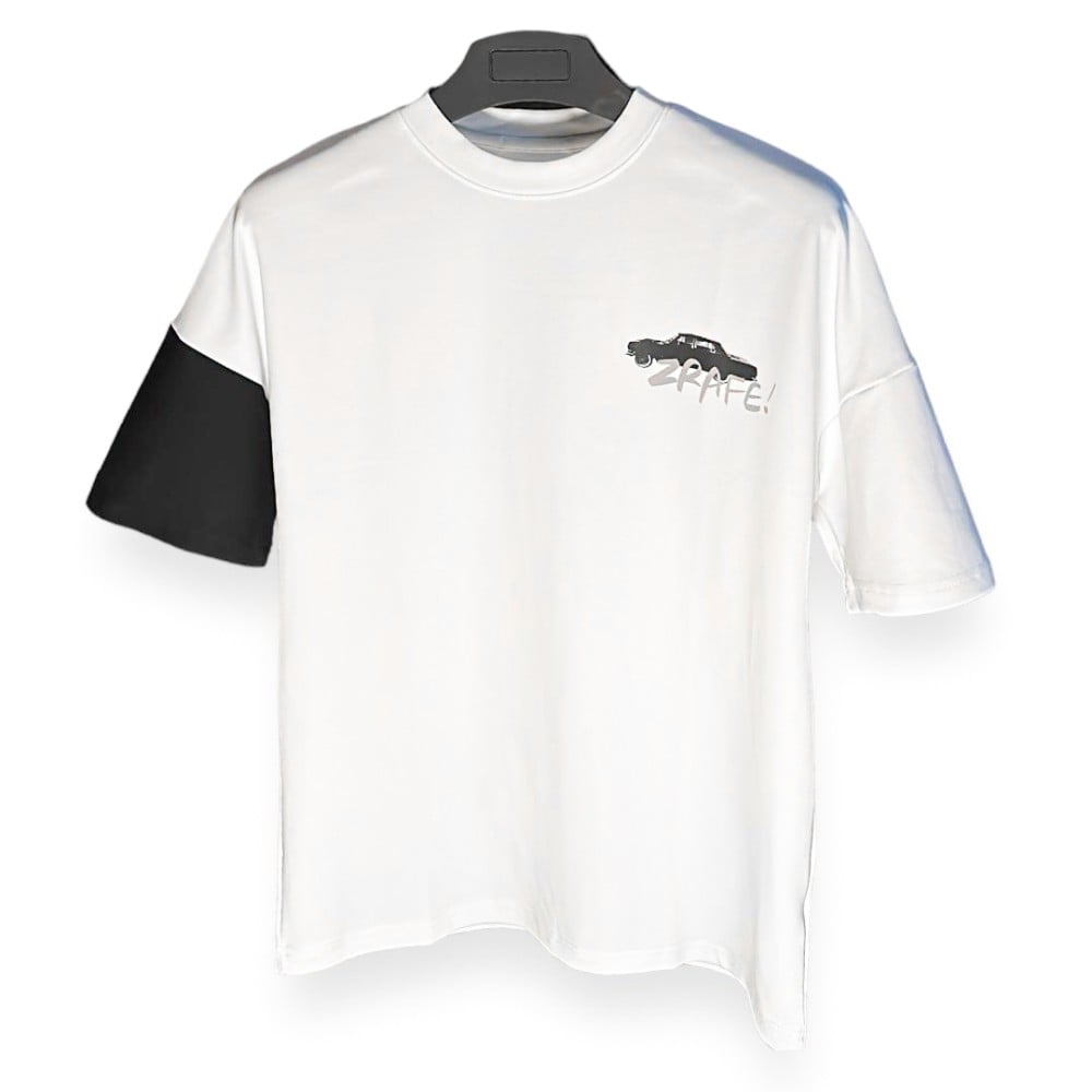 تيشرت اوفر سايز باللون الابيض والكم الاسود